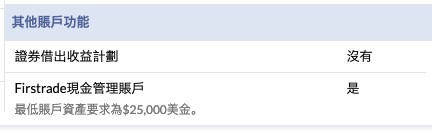 申請需開立現金管理帳戶,最低存款 US$25,000(約 HK$194,000,僅供參考)。年費及首次寄卡費均為 US$0。此要求適用於擁有 Firstrade 戶口之投資用途帳戶,資金主要用於股票等投資。(62 字)