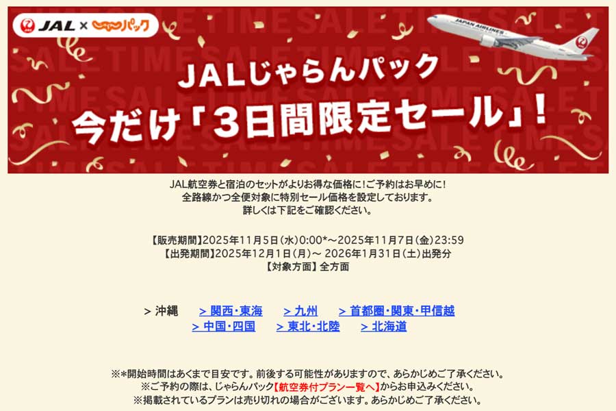 由 11 月 5 日至 7 日,旅行預訂網站「じゃらんnet」的動態套票「JAL じゃらんパック」將舉行為期三天的限時特賣,這可是難得的機會!無論你計劃去日本的哪個角落,這次優惠都涵蓋所有目的地,讓你隨心所欲地計劃你的夢想之旅。