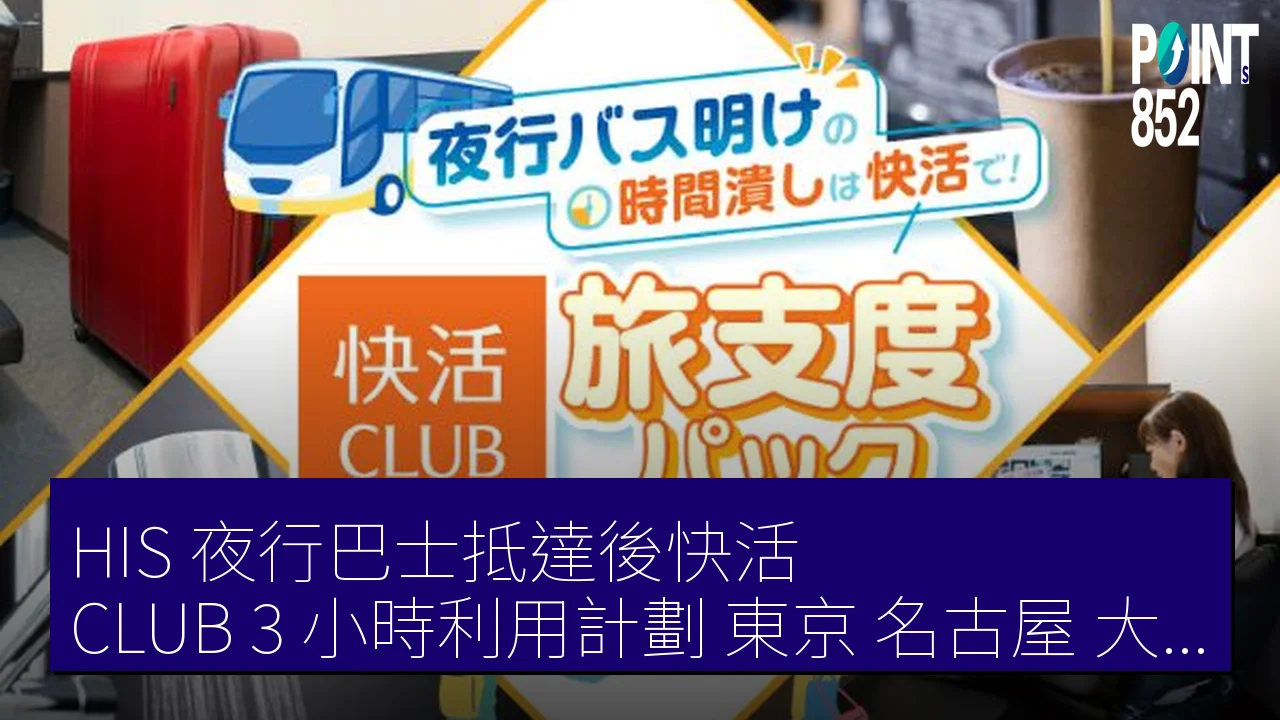 方案適用東京、名古屋及大阪部分地區的夜行巴士抵達乘客。HIS 與快活 CLUB 合作,旅客可於下車後直接使用個室休息,解決清晨等待時間問題。詳情可查 HIS 官網。