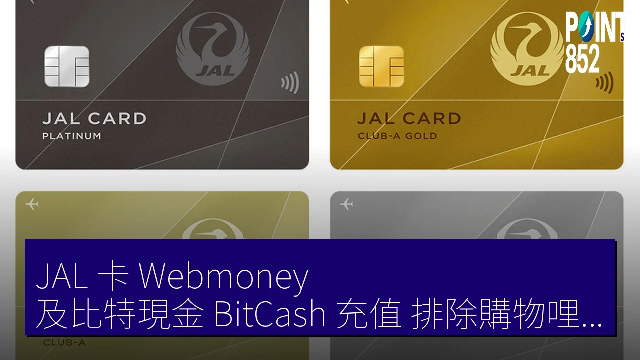 比特現金(ビットキャッシュ)信用卡充值已被 JAL 卡排除在購物哩程積算之外。過去此類交易可獲 1% 哩程回饋,現標記為非対象。JAL 公告涵蓋多項預付卡,建議透過 App 追蹤最新規則及替代方案。(72 字)