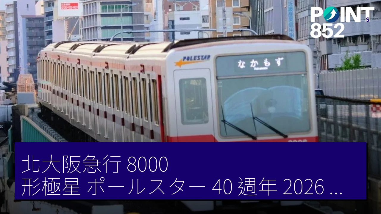 北大阪急行電鐵(北大阪急行電鉄)宣布,自 2026 年(令和 8 年)4 月 22 日起,將為其 8000 型「北極星」(ポールスター)列車營運開始 40 周年推出系列紀念活動。該列車自 1986 年投入服務以來,以豪華內裝及舒適乘車體驗聞名,現正邁向退役階段。此舉旨在紀念其歷史貢獻,並標誌最後運行期。