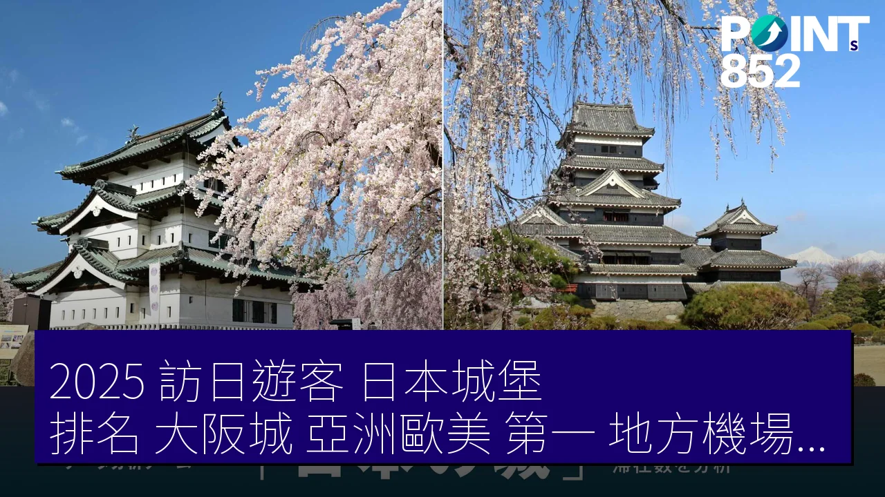 Navitime Japan 的分析顯示,日本城堡成為訪日遊客文化體驗首選。2025 年總查詢量較 2024 年增長 20%,亞洲市場貢獻最大。城堡周邊的櫻花季及燈光秀活動,亦推升人氣。