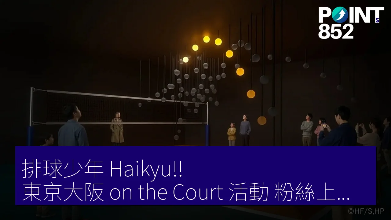 《排球少年》(Haikyu!!)粉絲活動「《排球少年》球場體驗」(Haikyu on the Court)將於大阪及東京舉行。該活動不僅展示全新插圖及周邊商品,更讓參加者親身踏上排球場,模擬與劇中角色對戰的體驗。活動體驗部分分為三個區域,其中同步球場(Synchro Court)以燈光重現劇中三場比賽場景,包括主角日向翔陽(Shoyo Hinata)及隊友影山飛雄(Tobio Kageyama)的配合攻勢。參加者可從不同位置觀察,包括對手球場一側,從而了解雙人協調攻擊的速度與精準度。