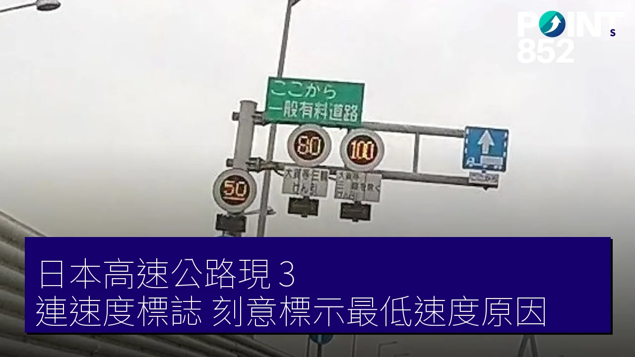 近年,日本高速公路上出現速度規制標識(速度限制標誌)並列的情況增多。一般標識顯示最高速度為 100 km/h,但部分路段會同時出現兩種或三種不同數字的標識。其中,一種標識專門標示「最低速度」,目的是提醒特定車輛維持最低行駛速度,以確保交通流暢及安全。