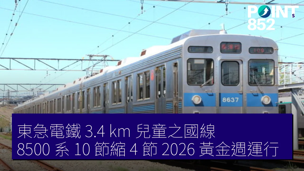 東急電鐵宣布,2026 年黃金週期間的星期六及公眾假期,將在兒童之國線增發臨時列車,使用 8500 系列 8637 編成運行。該車輛為動態保存狀態,從長津田站至兒童之國站,具體班次將於事前公布。
