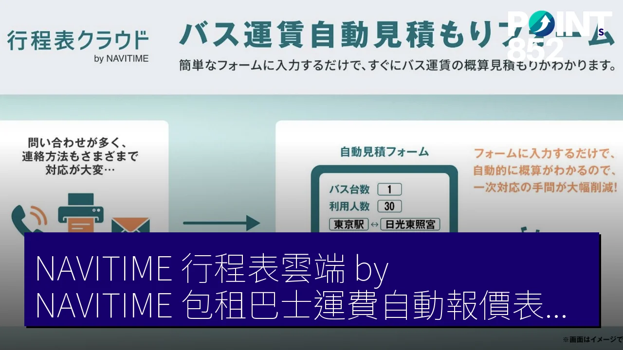 NAVITIME Japan(ナビタイムジャパン)近日在「行程表雲端 by NAVITIME」(行程表クラウド by NAVITIME)網站上,新增「巴士運賃自動見積もり表單」(バス運賃自動見積もりフォーム)功能。該功能允許用戶在網頁上自動計算巴士概算運賃,並生成見積もり文件。