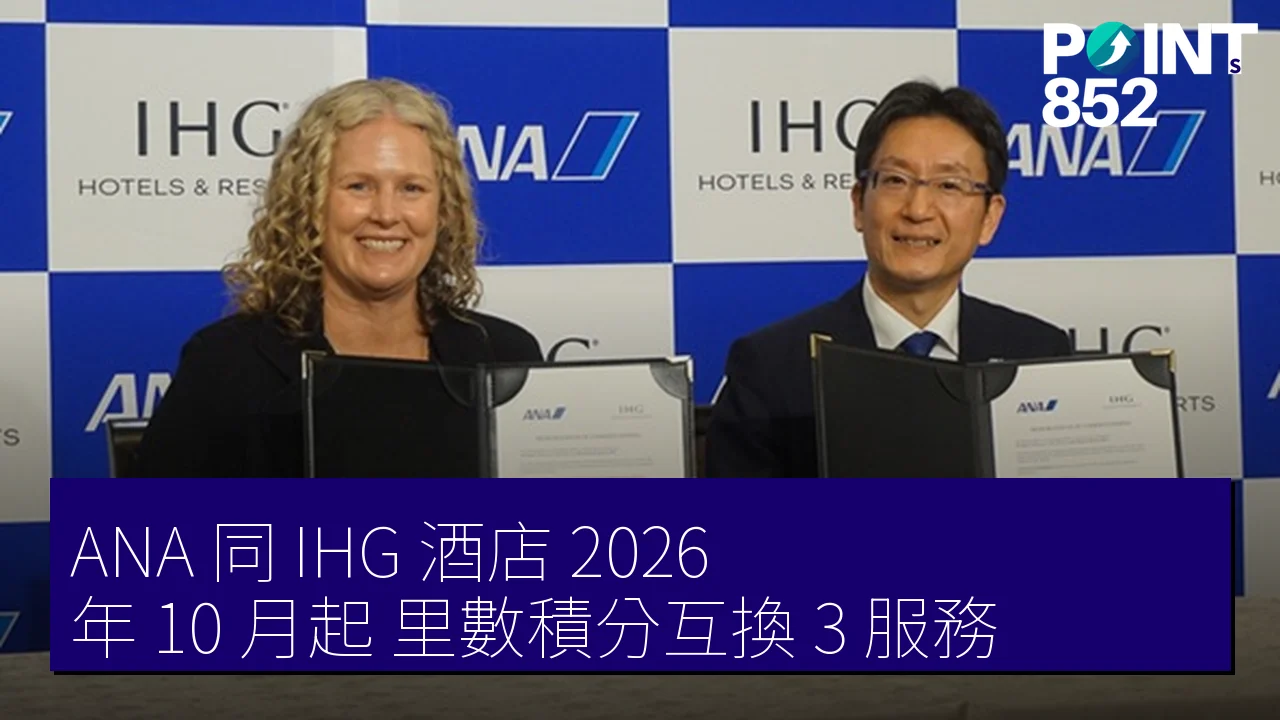 是,雙方推出「相互兌換」服務,ANA 里數與 IHG One Rewards 積分可雙向兌換,讓旅客依需求靈活使用。適用於 2026 年 10 月起服務,涵蓋航空及酒店忠誠度計劃整合。
