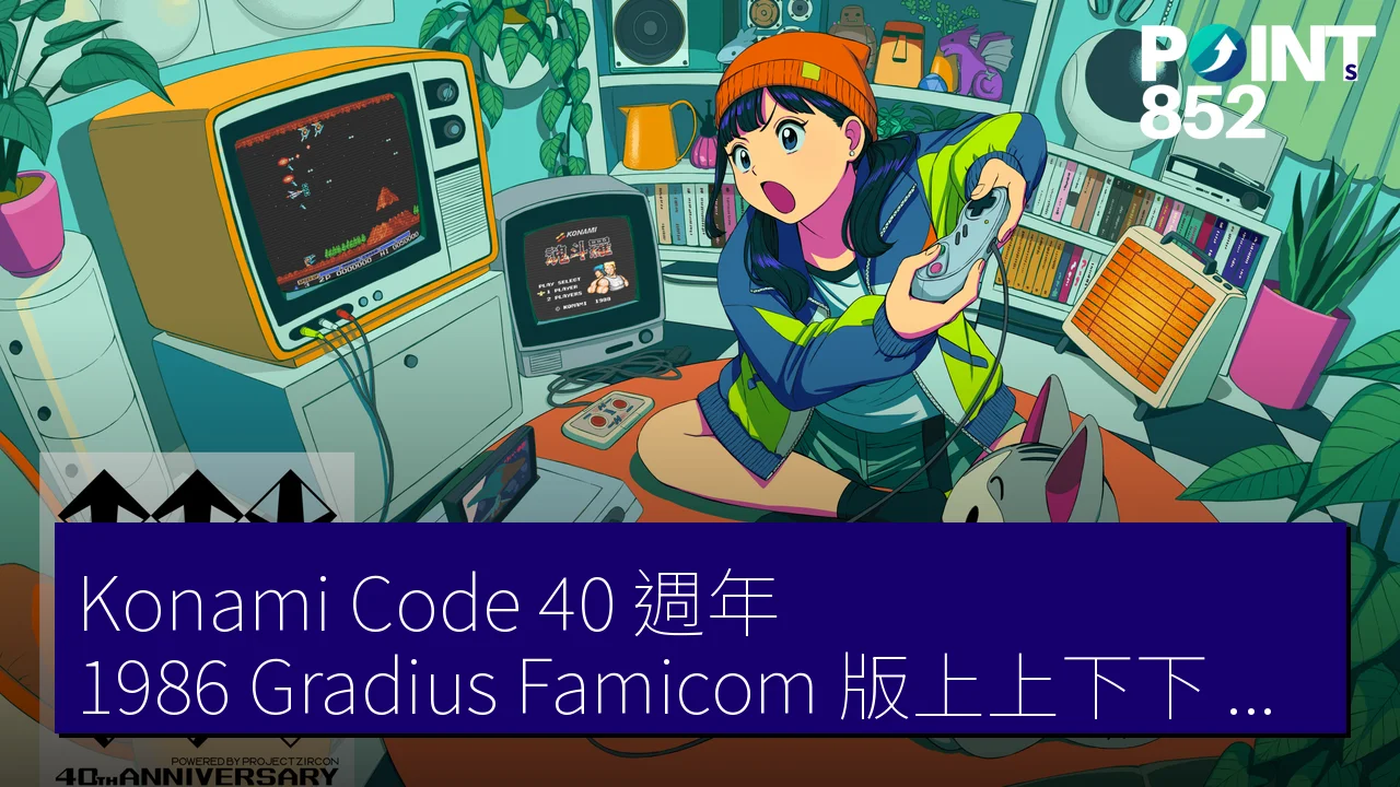 在日本,Konami Code 更常與 Gradius 而非 Contra 聯繫,後者擁有出色音樂。資料來源:Project Zircon / ↑↑↓↓←→←→BA 40th Anniversary、PR Times。圖片:PR Times。