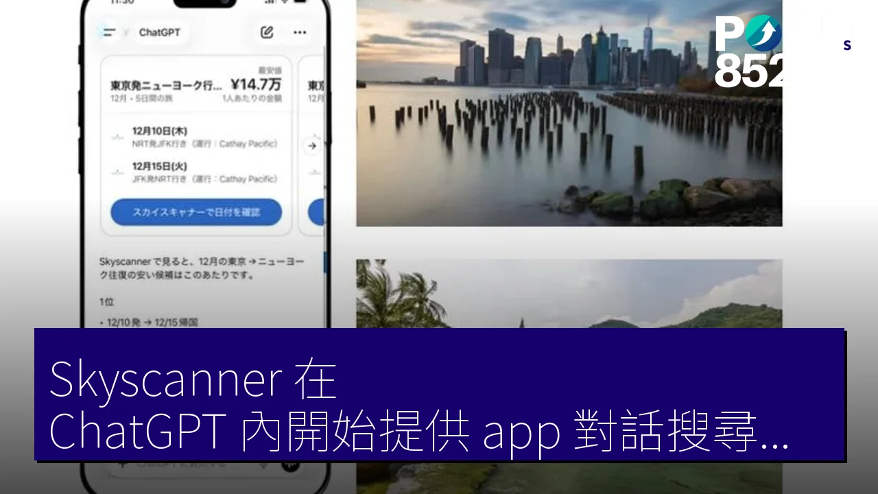 從 ChatGPT 應用程式畫面存取及安裝 Skyscanner 應用程式,然後在 ChatGPT 上提及「@skyscanner」即可顯示全球航班選擇。用戶可透過自然對話獲得即時搜尋結果,模擬計劃旅行的過程。