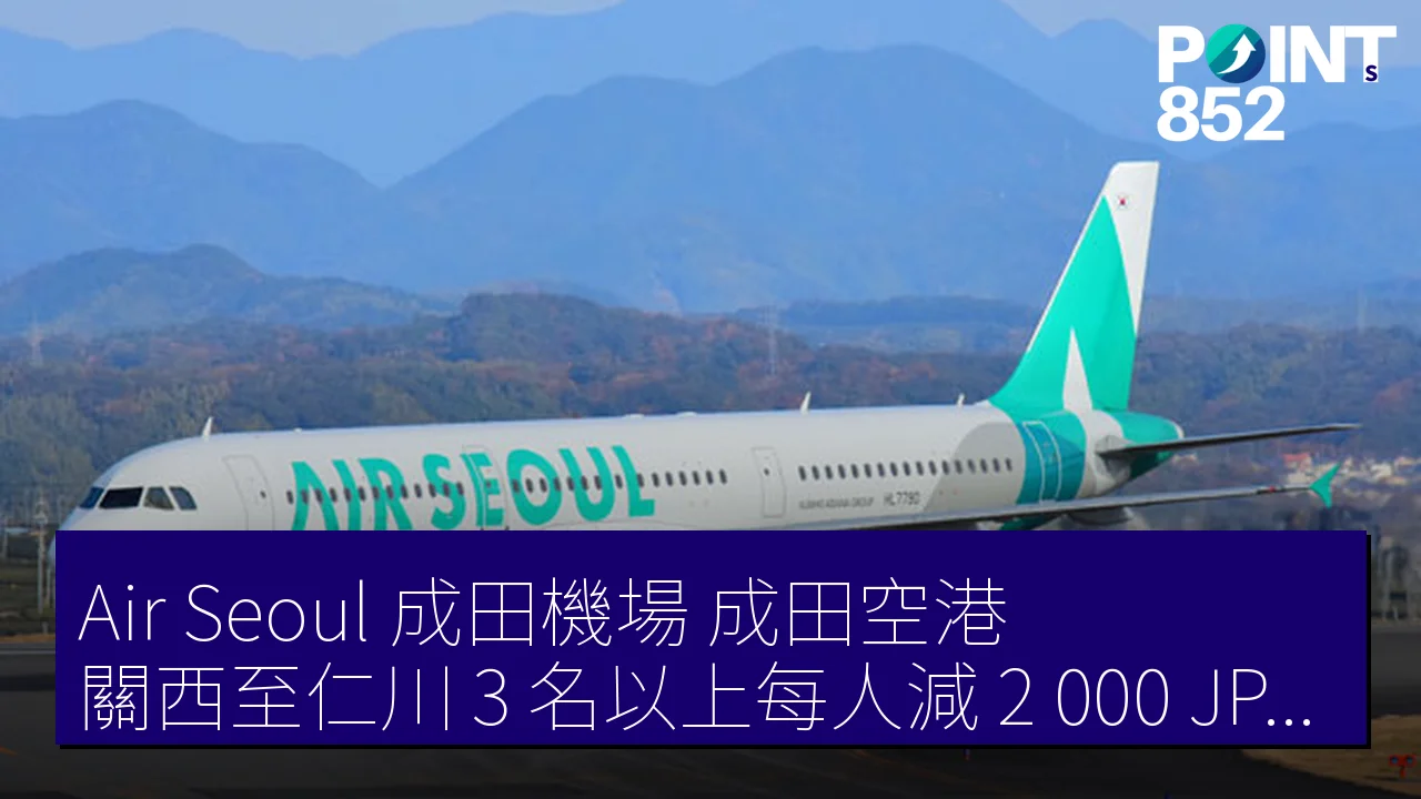 Air Seoul 成田機場(成田空港)關西至仁川 3 名以上每人減 2,000 JPY 4 月 23 日至 6 月 22 日