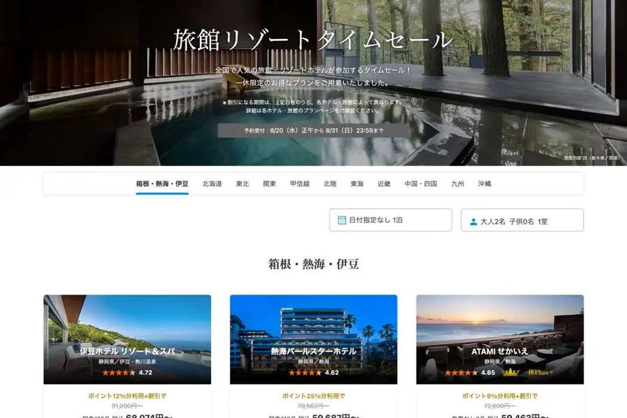 一休宣布,其宿泊預訂網站「一休.com」將於8月20日正午至31日正午期間舉辦「旅館・度假村限時特賣」,吸引旅客參與。