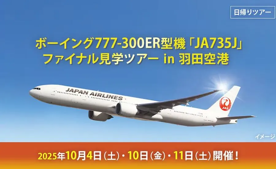 ジャルパック將於10月4日、10日及11日舉辦「波音777-300ER型機『JA735J』最終見學之旅」,地點位於羽田機場。這項活動旨在紀念日本航空的波音777-300ER型機(機體編號:JA735J)退役。