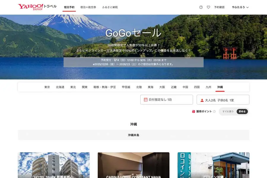 LINE Yahoo 近日宣布,將於 9 月 14 日中午 12 時至 15 日期間舉行「GoGo 優惠大促銷」,該活動於旅行預訂網站「Yahoo! 旅行」進行,為期 36 小時,提供多間熱門住宿設施 10% 以上的折扣。