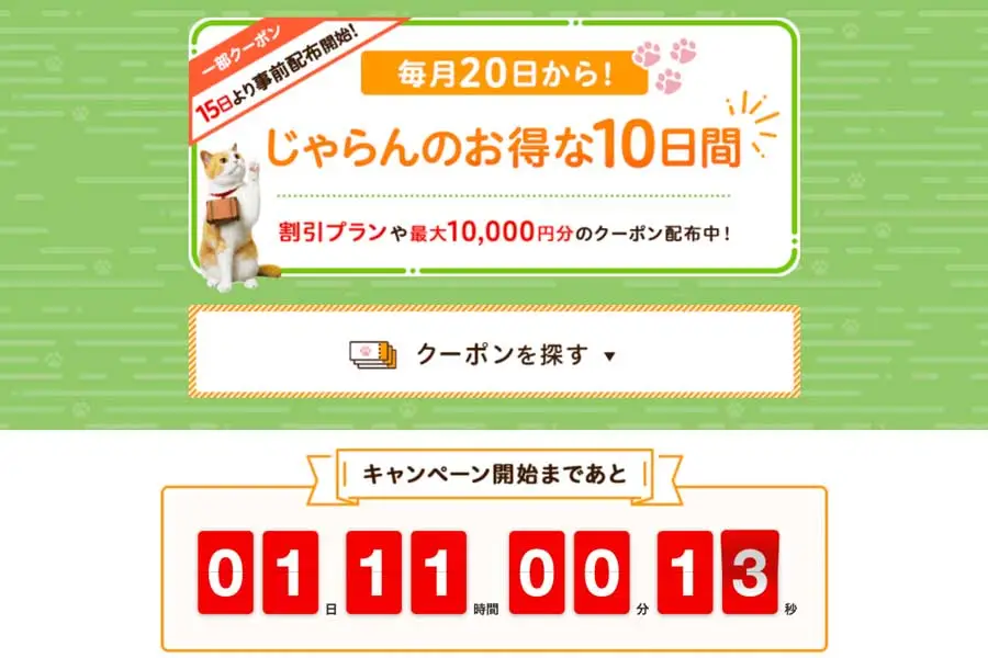 旅行預訂網站「じゃらんnet」將於每月20日舉辦的優惠活動「じゃらんのお得な10日間」,於9月20日至29日正式開展。