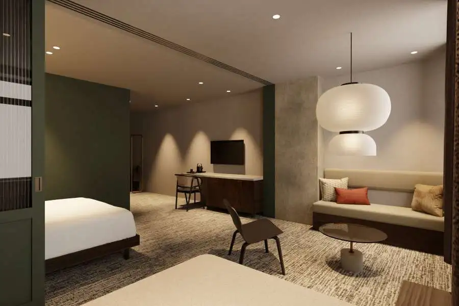 酒店內的休息室將於每日早上7時至9時30分提供早餐,並與專門提供叉燒的餐廳「叉燒春」合作推出特色菜單,亦會有原創菜式供應。在上午11時至晚上11時期間,該休息室將開放作為咖啡廳及酒吧供一般顧客使用。此外,地下1層設有3間供住宿客戶使用的按小時計費的私人桑拿,以及一個源自溫泉的霧桑拿。